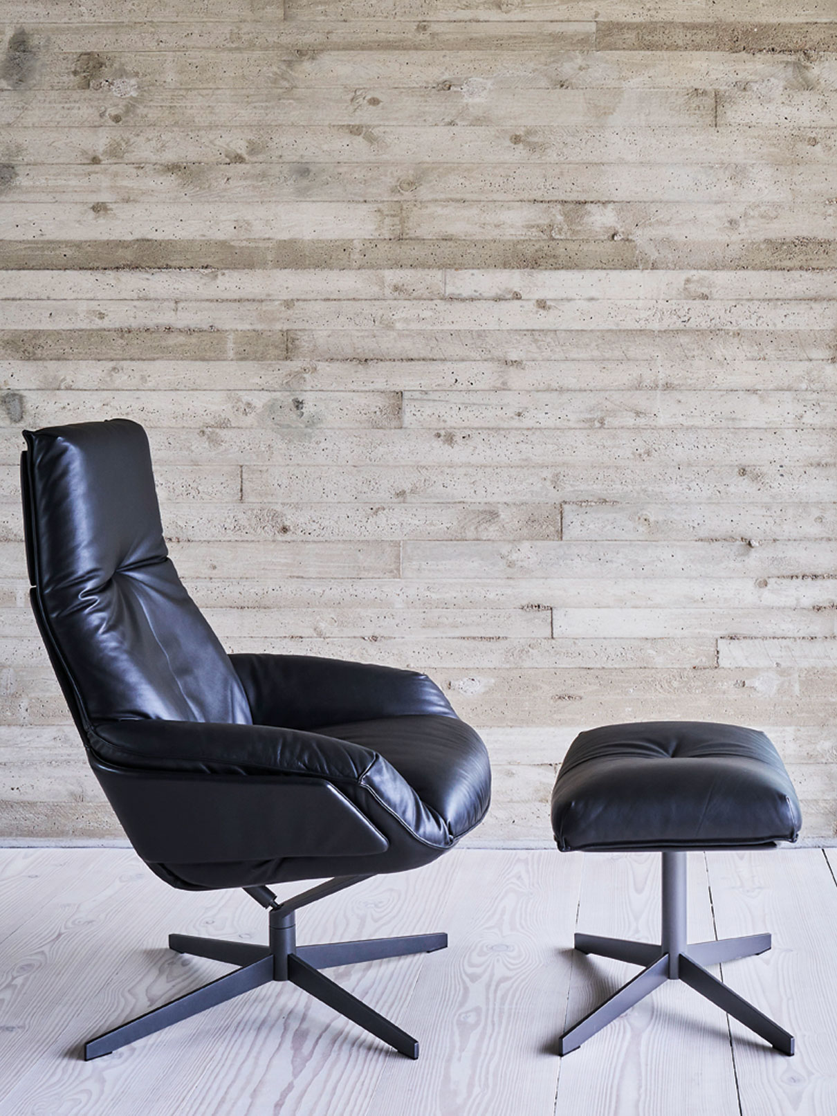 Sessel Daron / BW Group, Bezug schwarz, Leder / inklusive Hocker